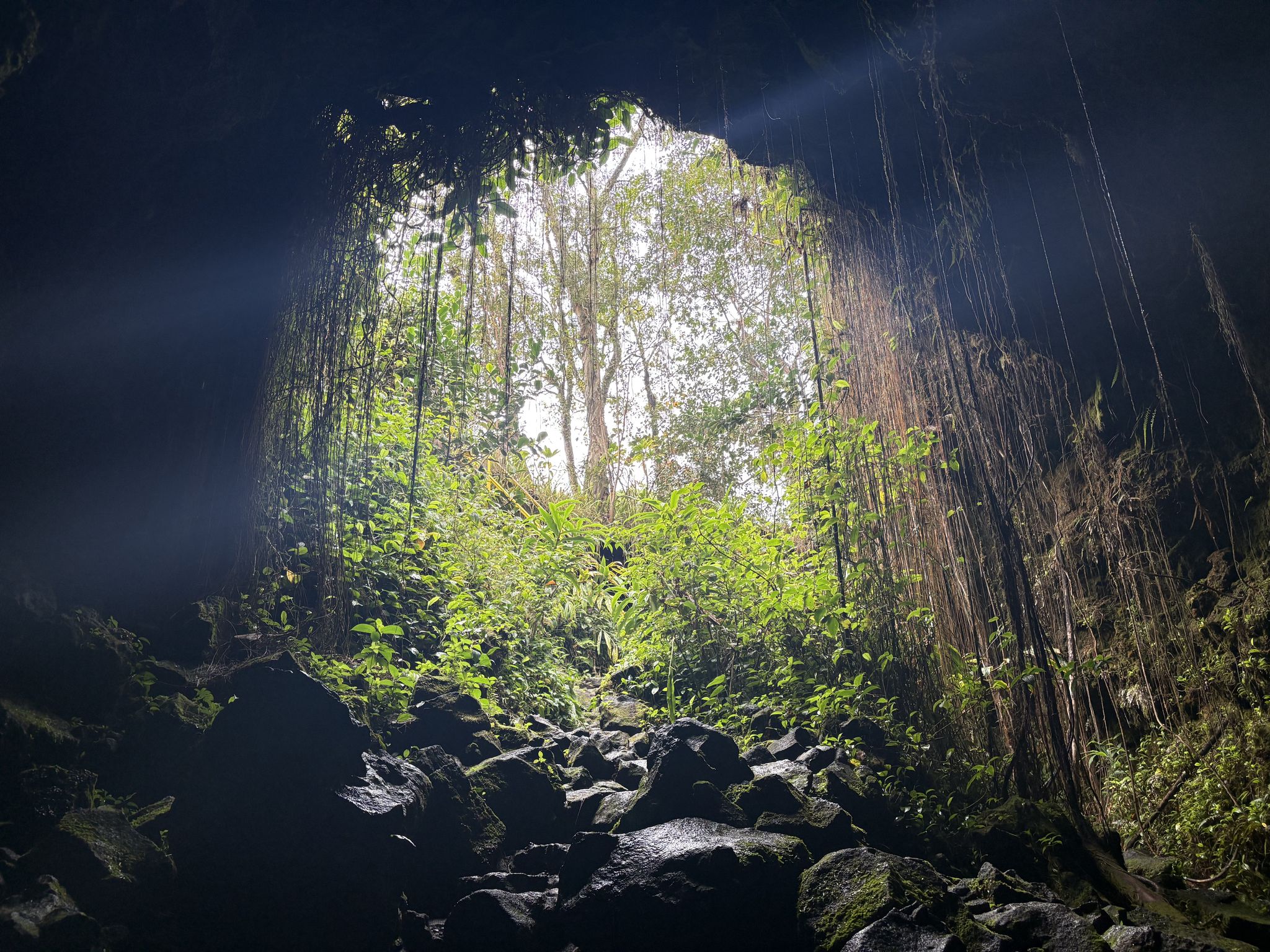 The entrance to Kaūmana Caves, a lava tube network in Hilo.