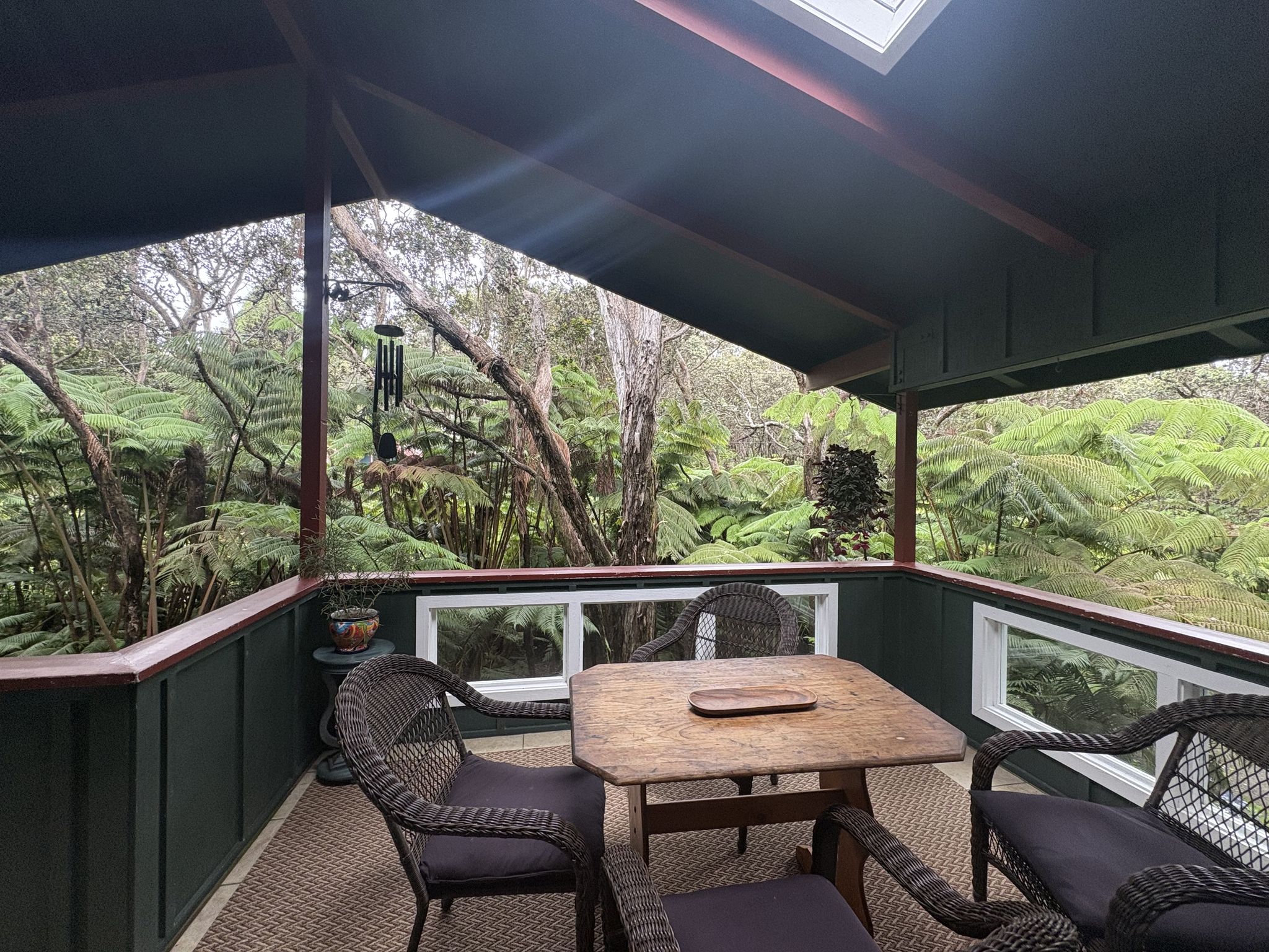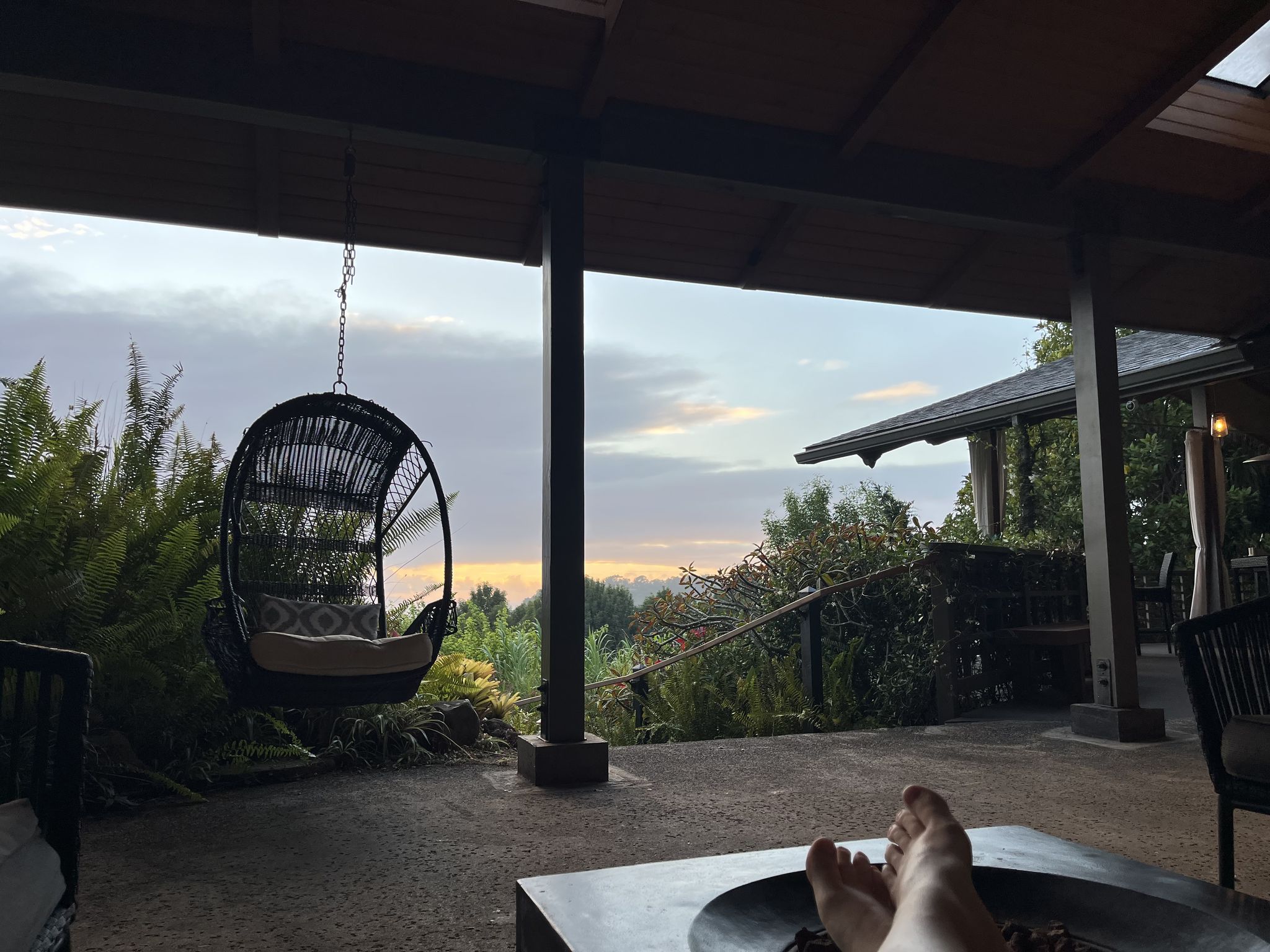 Scout investigating the rocks at Punalu'u Black Sand Beach.The view from our stay in Volcano Village.